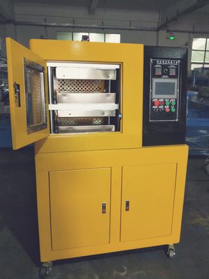 the electric-heating flat plates to apply pressure and temperature,make the material shaping,testing and